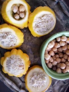 - Stuff the scooped centre with a few chickpeas it can hold.